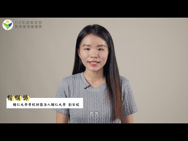 | 楷模獎 | 劉芷含 | 輔仁大學學校財團法人輔仁大學 | 新北市林口區東湖國民小學 | 國民小學 |