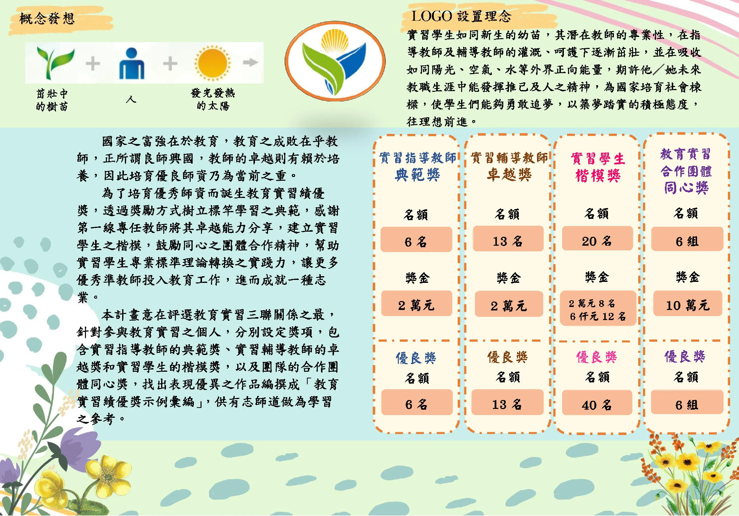 教育實習績優獎項主要是鼓勵師資培育之大學之實習指導教師、實習學生及教育實習機構之實習輔導教師積極參與教育實習,協助實習學生專業標準理論轉換之實踐力,獎勵其對教育實習貢獻,增進教育實習效能,提升師資培育素質。